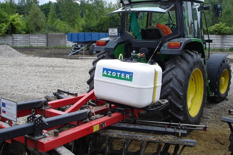 Aplikácia aplikátorom umiestneným na náradí: Ďalším spôsobom použitia AZOTERu je aplikácia aplikátormi namontovanými na kultivačné zariadenie, pomocou ktorých sa zaistí okamžité a priame zapravenie AZOTERu do pôdneho profilu, zároveň sa znižujú aplikačné náklady a zjednodušuje sa samotný pracovný úkon. Tento aplikátor je tiež vybavený vlastnou riadiacou jednotkou a elektromotorom, ktorý je napojený na batériu traktora. Do nádrže aplikátora sa aplikuje koncentrát AZOTERu.
